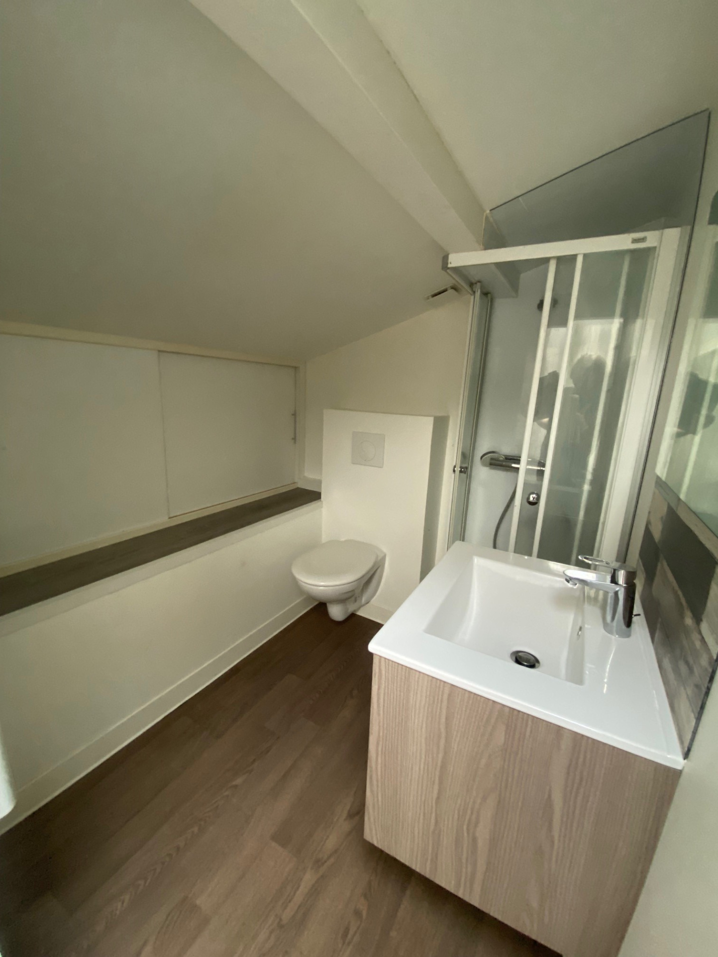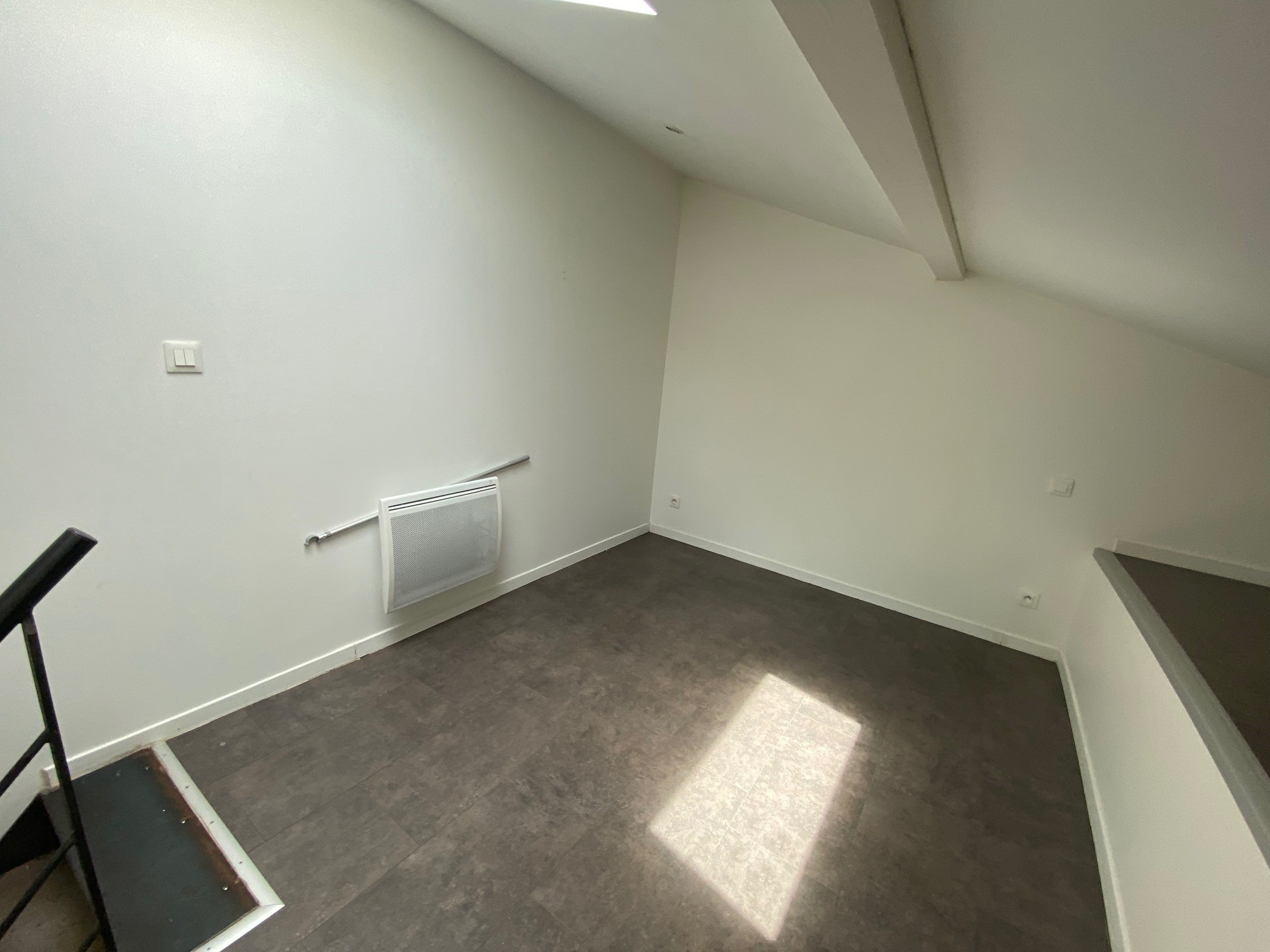 Toulouse (31000)Appartement situé proche de la place Saint Aubin, au deuxième et dernier étage sur deux niveaux. Il se compose d'un grand espace de vie avec cuisine ouverte semi équipée (hotte + plaque vitrocéramique). A l'étage la chambre sous les toits avec la salle d'eau et le WC.
