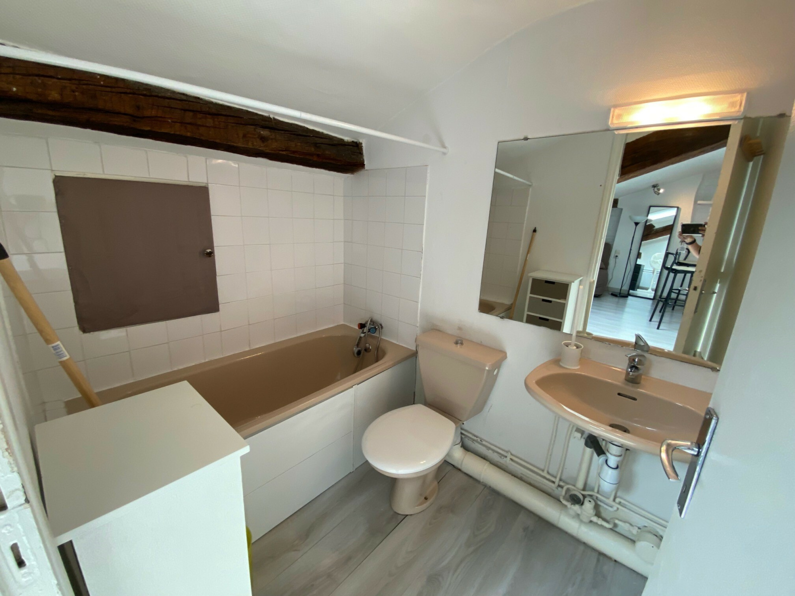 Toulouse (31000)Situé en hyper centre à côté de la place du Capitole. Studio meublé sous les toits, lumineux, au dernier étage avec ascenseur, dans un immeuble sécurisé. Il se compose de la pièce à vivre avec kitchenette équipée et d'une salle de bain avec WC.